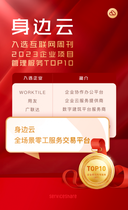 身边云入选互联网周刊《2023企业项目管理服务TOP10》榜单