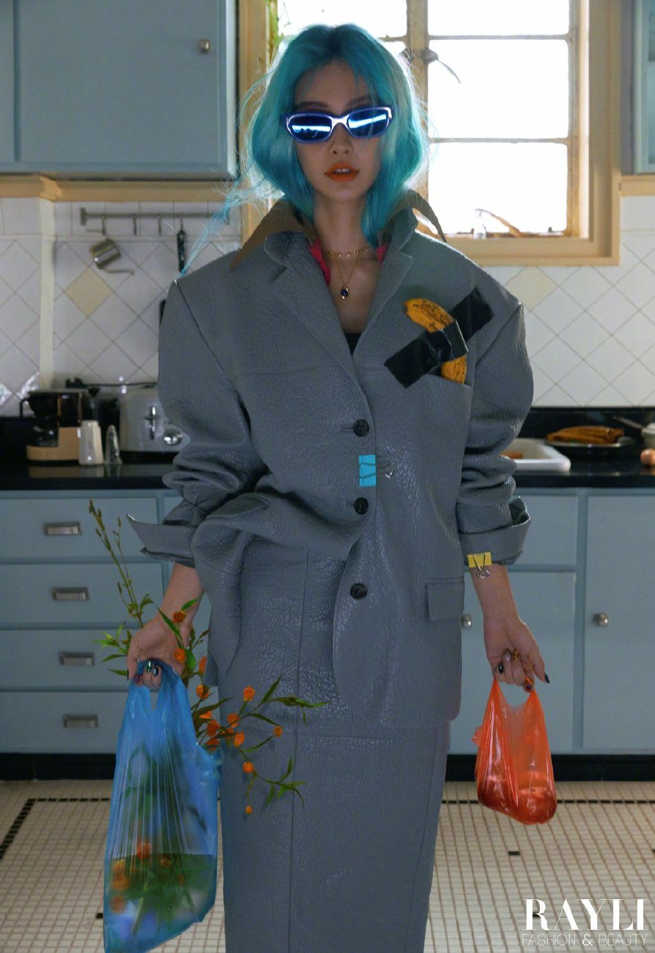 组图:Angelababy拍瑞丽28周年纪念刊 薄荷绿渐变发色大胆前卫