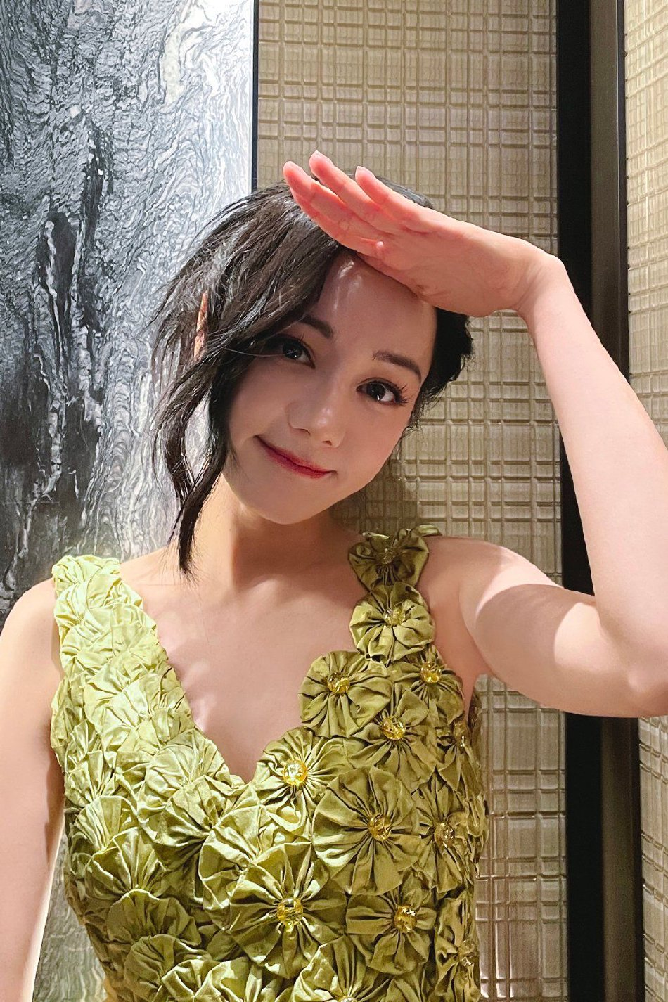 9月10日,迪丽热巴工作室分享活动花絮照。热巴身穿绿色无袖花朵裙,低眸浅笑侧颜五官立体,似美神降临。