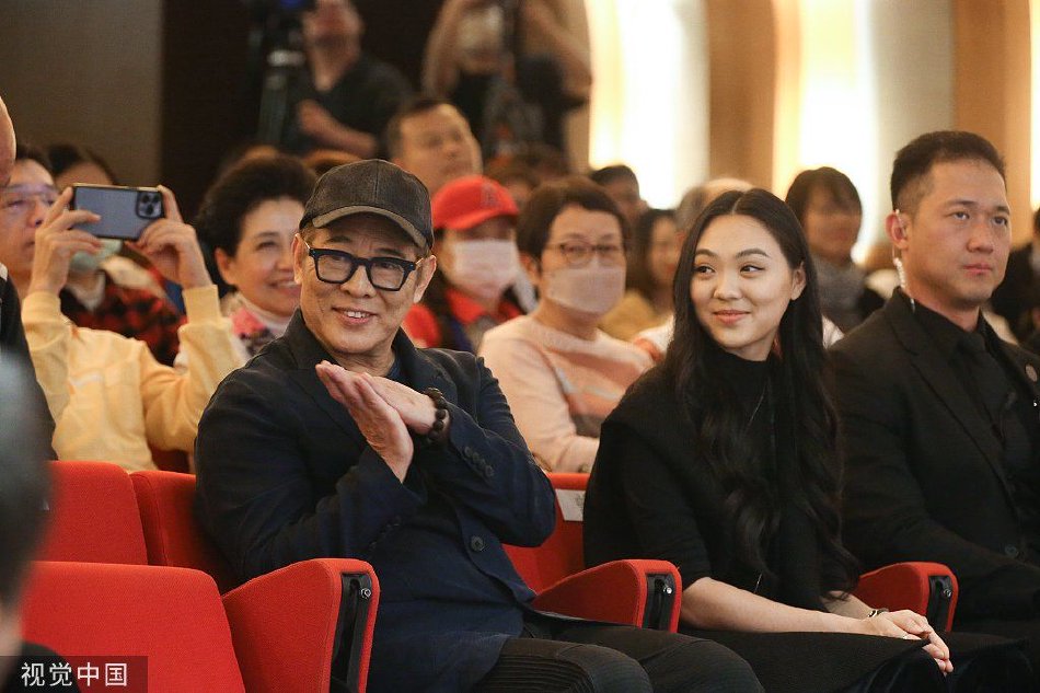 2023年11月19日,台北,李连杰出席首本著作《超越生死:李连杰寻找李连杰》新书分享会,跟与谈人曾宝仪聊佛法与人生经历。现场李连杰的大女儿Jane台下露脸,父女二人同框。