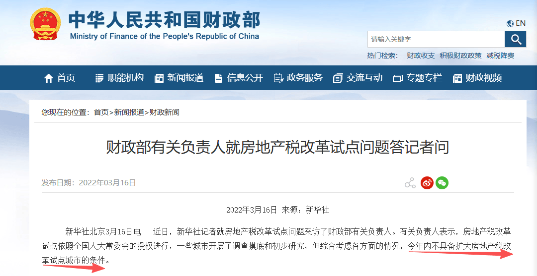 但是,这个试点尚未正式展开,中国房地产市场开始进入到调整周期。2022年,财政部明确“今年内不具备扩大房地产税改革试点城市的条件”。