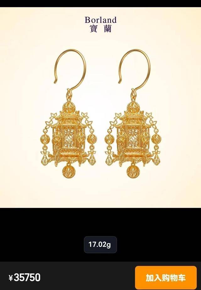 宝兰天猫旗舰店古法花丝工艺宫灯状耳坠,17.02克售价35750元